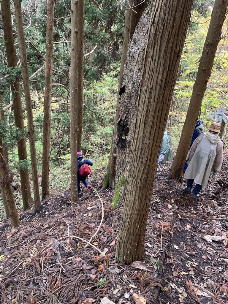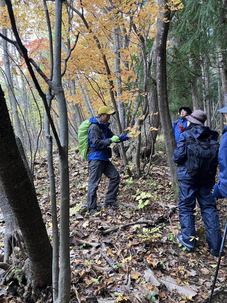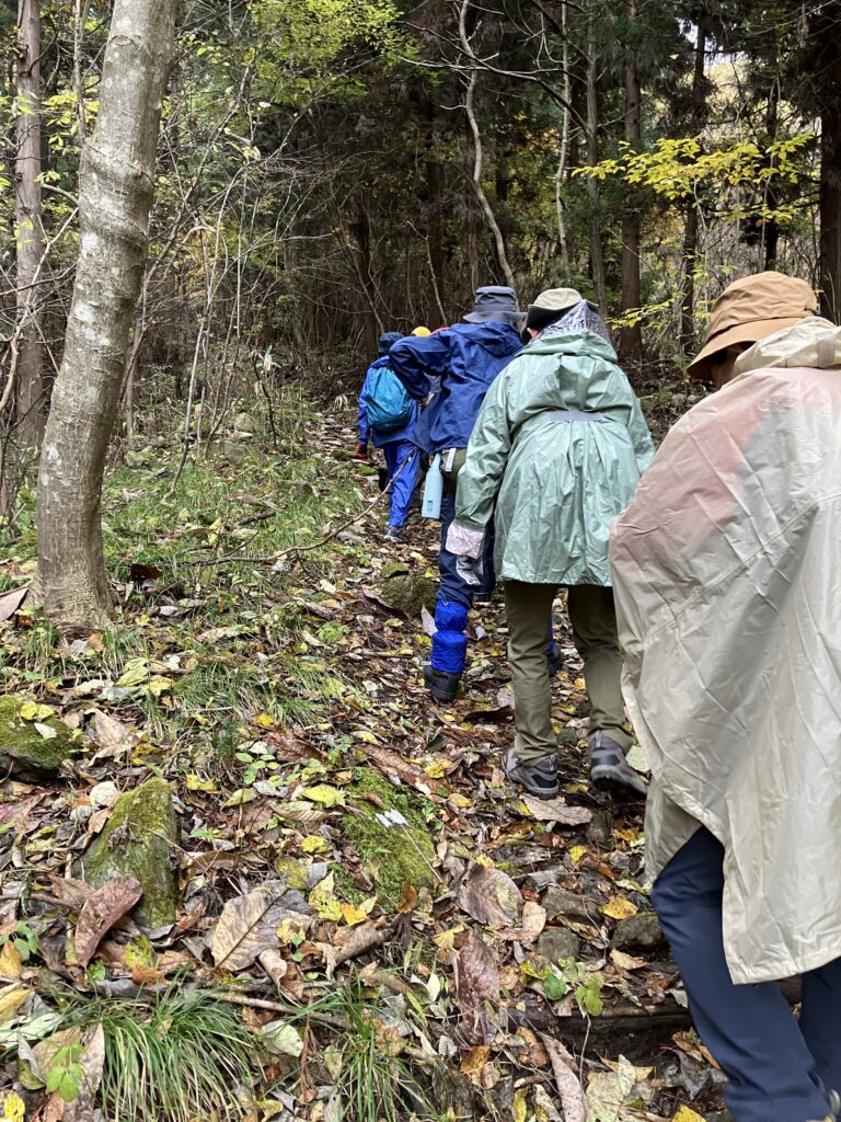 登山ガイドの大友晃さんの歩き方レクチャーや、紅葉のなかの登山ならではの落ち葉を使った植物のお話などが途中に入り、疲れることがほとんどない登山でした。標高も約600メートルの低山なので午前中には降りてこれる手軽さも好評。高い山だと気が引けるけどこれだったらと参加してくれた方もいらっしゃり、みんなでおしゃべりしながら楽しい時間を過ごせました。