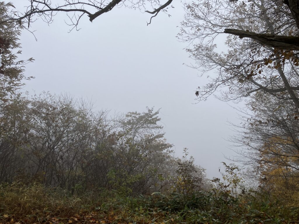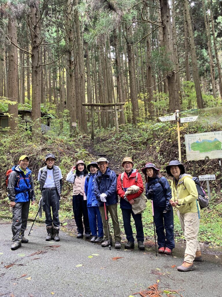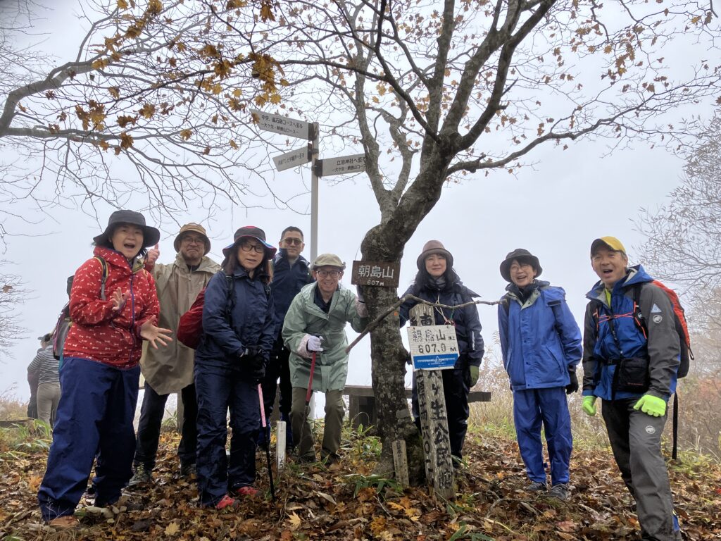 薄曇りの午前中に朝島山に到着。皆さん雨対策ばっちりで朝島山の登山を開始しました。