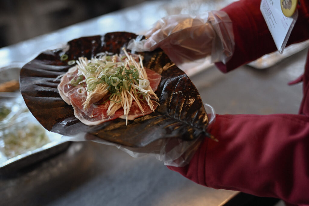 出来上がった「朴葉味噌」は、朴の葉がふわりと香り、味付けがお味噌だけなんて信じられない。寒さもスパイス。